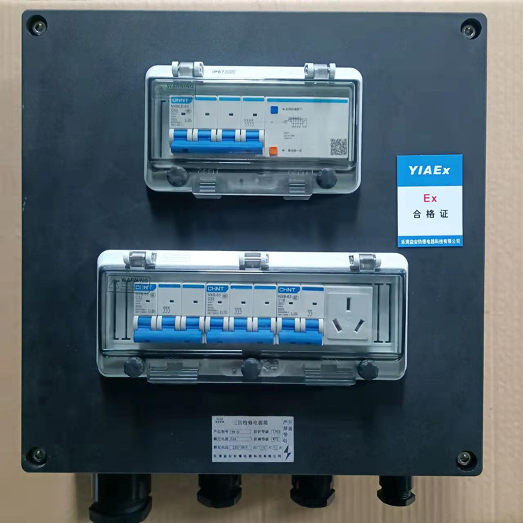 三防配電箱正泰元件,總開關(guān)帶漏電保護(hù),三個分開關(guān)帶一個導(dǎo)軌式插座,壁掛式安裝,三防箱采用工程塑料壓鑄而成,表面為黑色,下進(jìn)下出,外殼尺寸為360*360*120,可在戶內(nèi)戶外使用,優(yōu)質(zhì)緊固件,可根據(jù)客戶要求定制斷路器電流大小和級數(shù)。